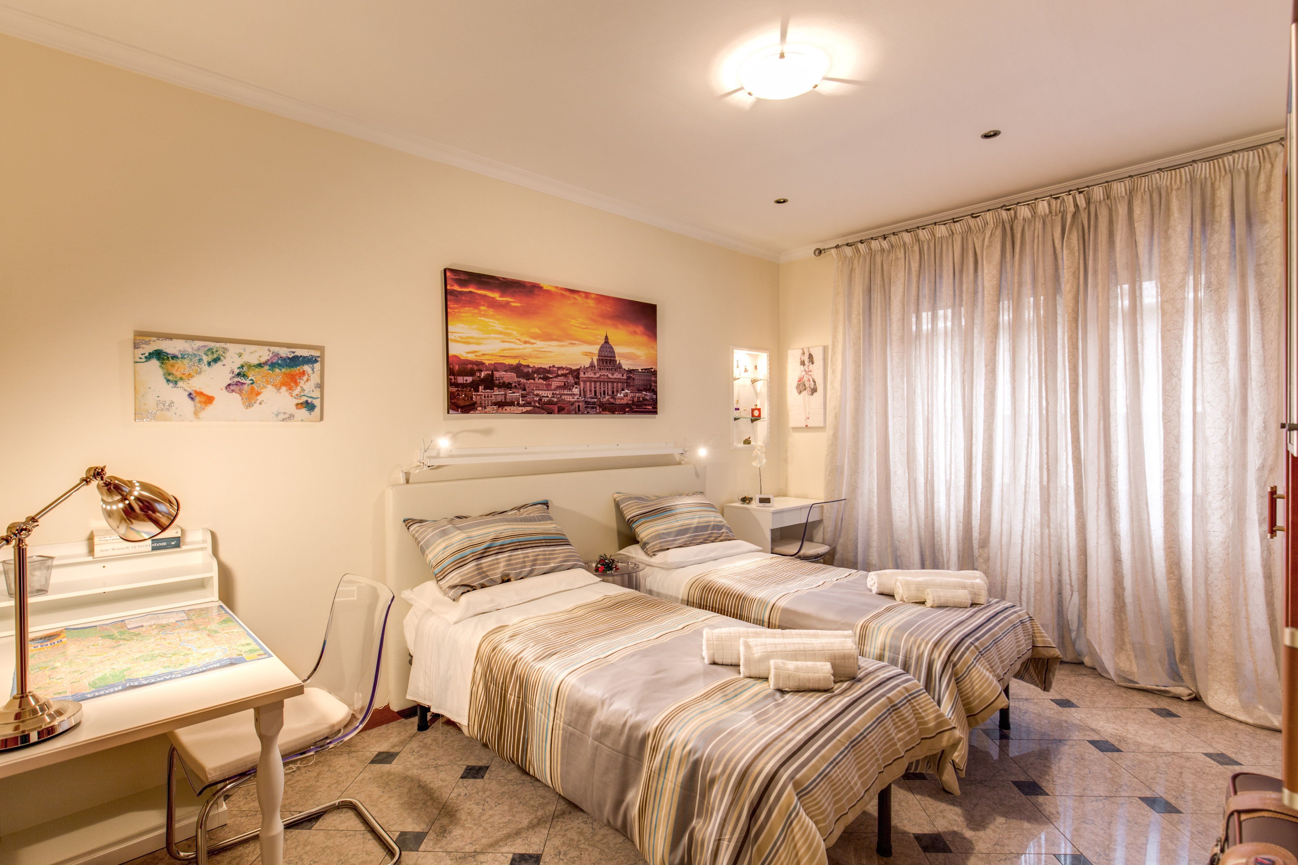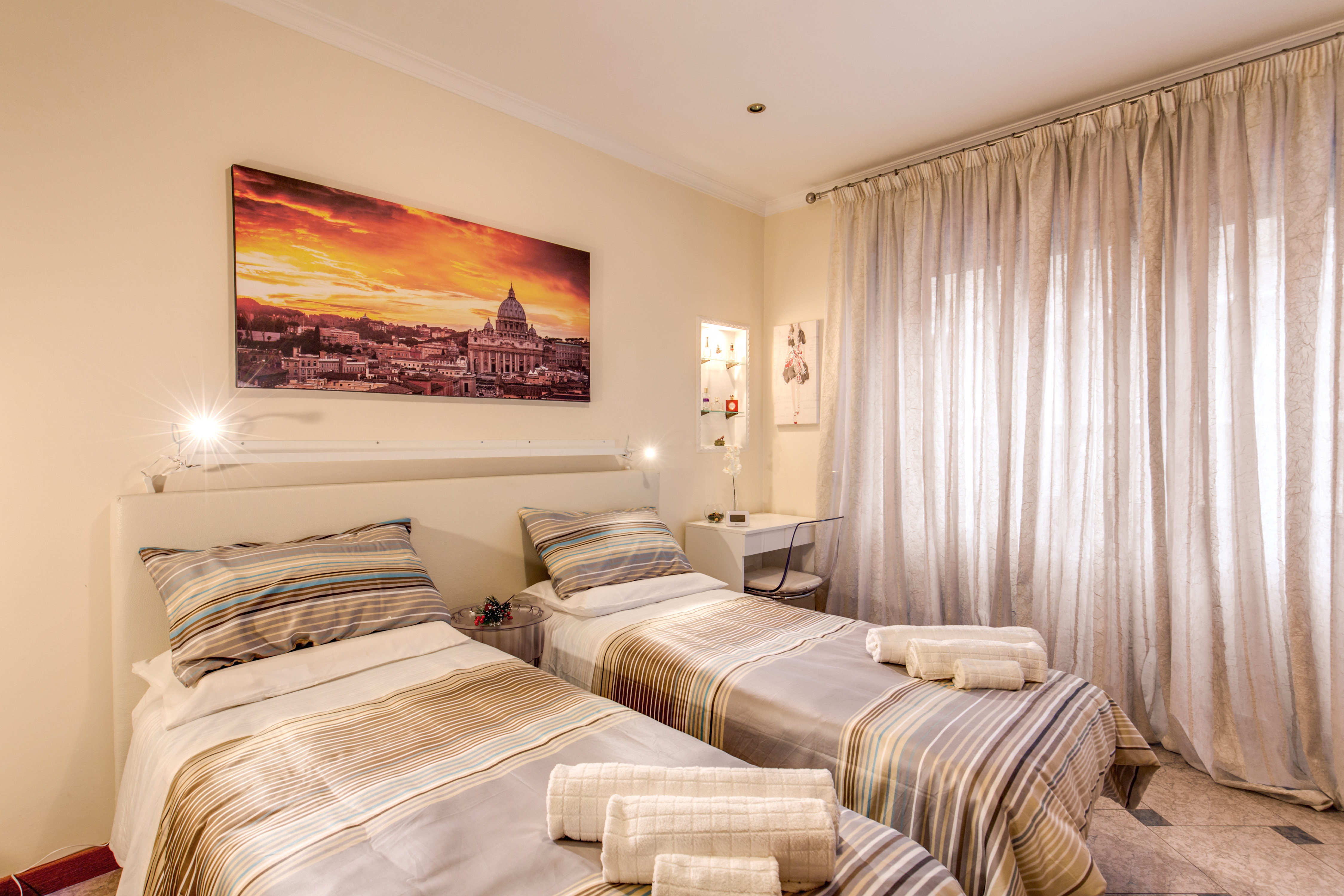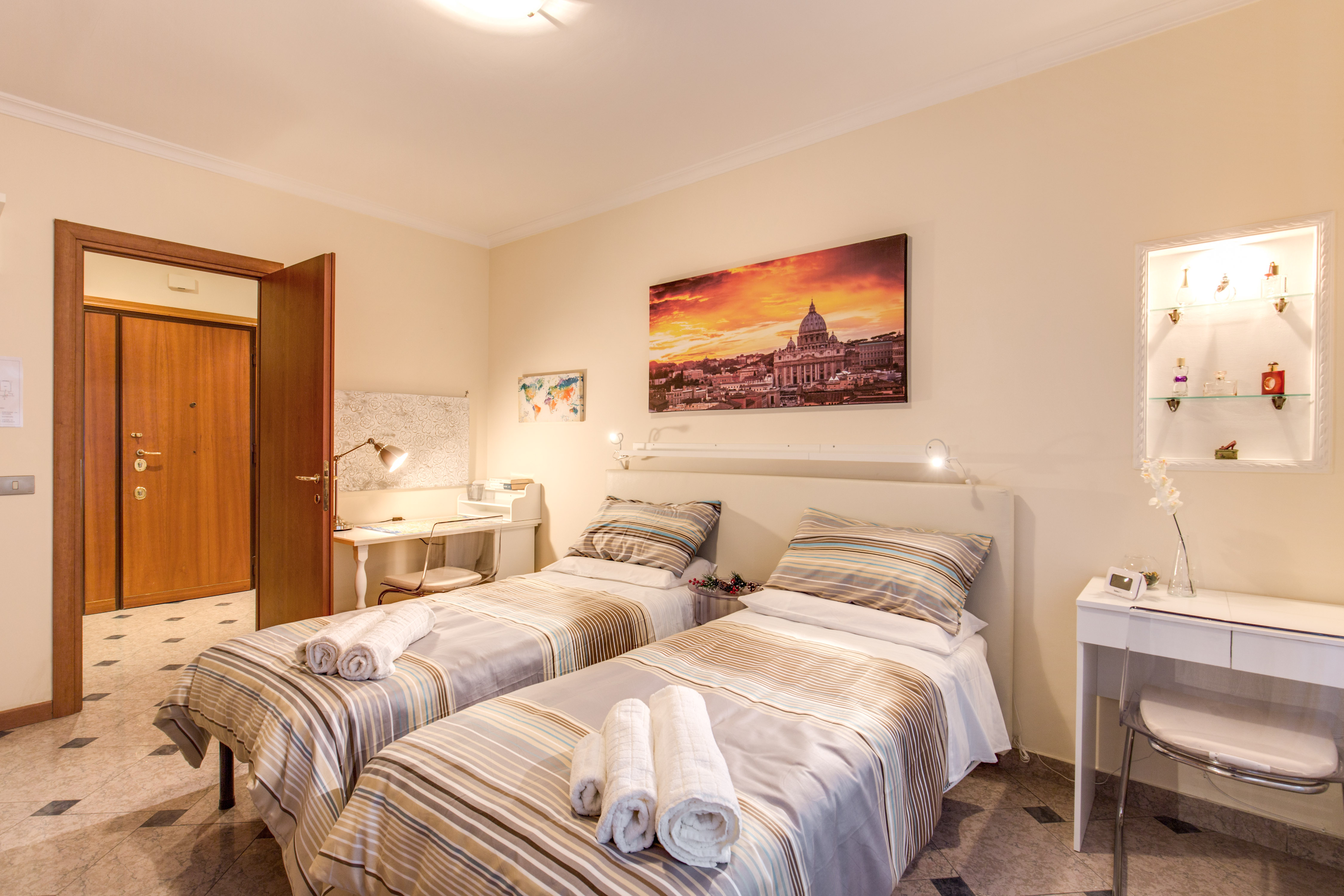 N. 514 (direzione stazione Termini) e quella N.19 (direzione P.zza Risorgimento ) con fermata di fronte all’ingresso del palazzo,  verrete  condotti in poche fermate allo snodo della METRO A o ,tranquillamente seduti,  dietro le mura di  P.zza San Pietro.  Nelle strade parallele sono presenti altre linee autobus che con facilità vi collegheranno in tutte le zone di Roma in tempi rapidi.