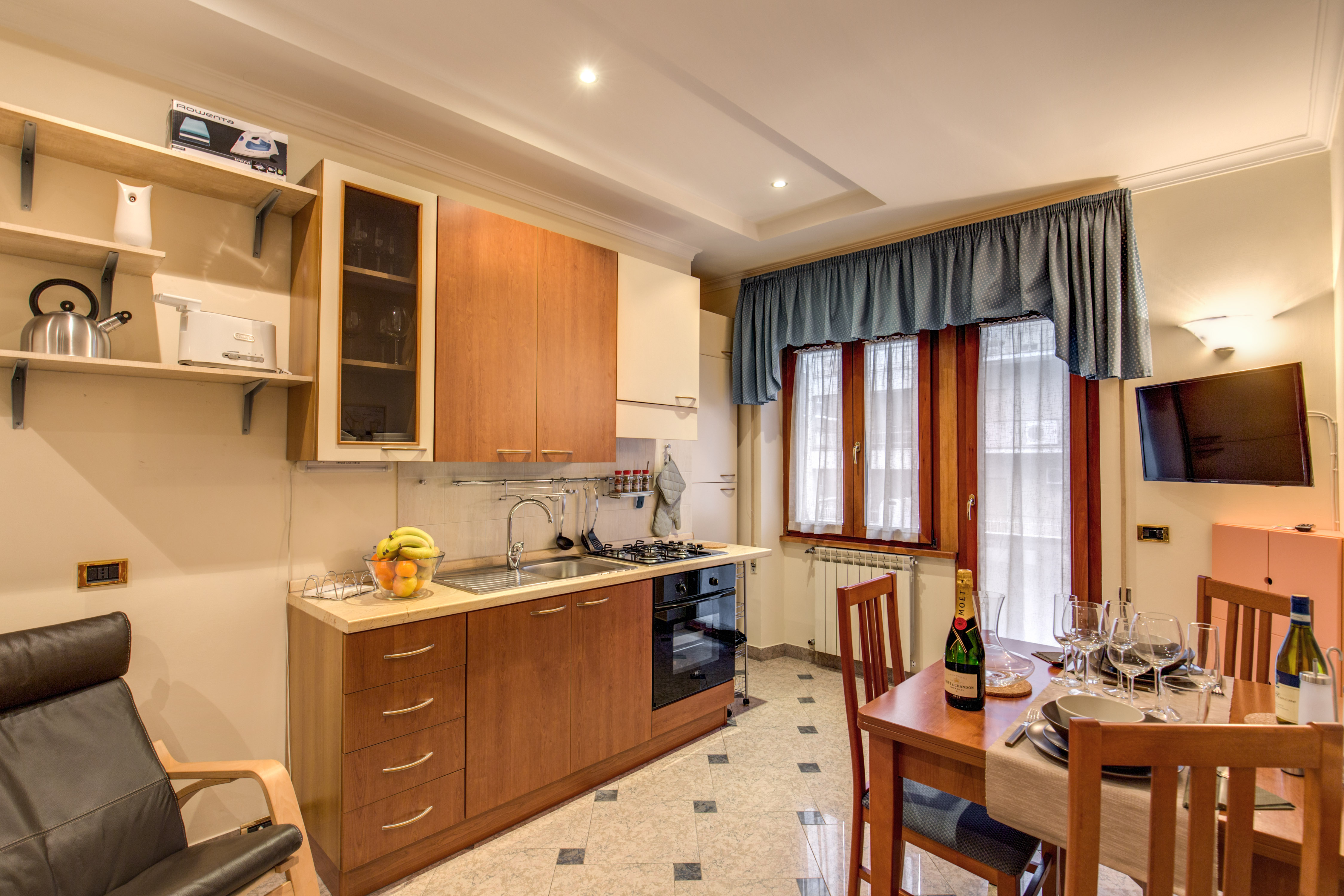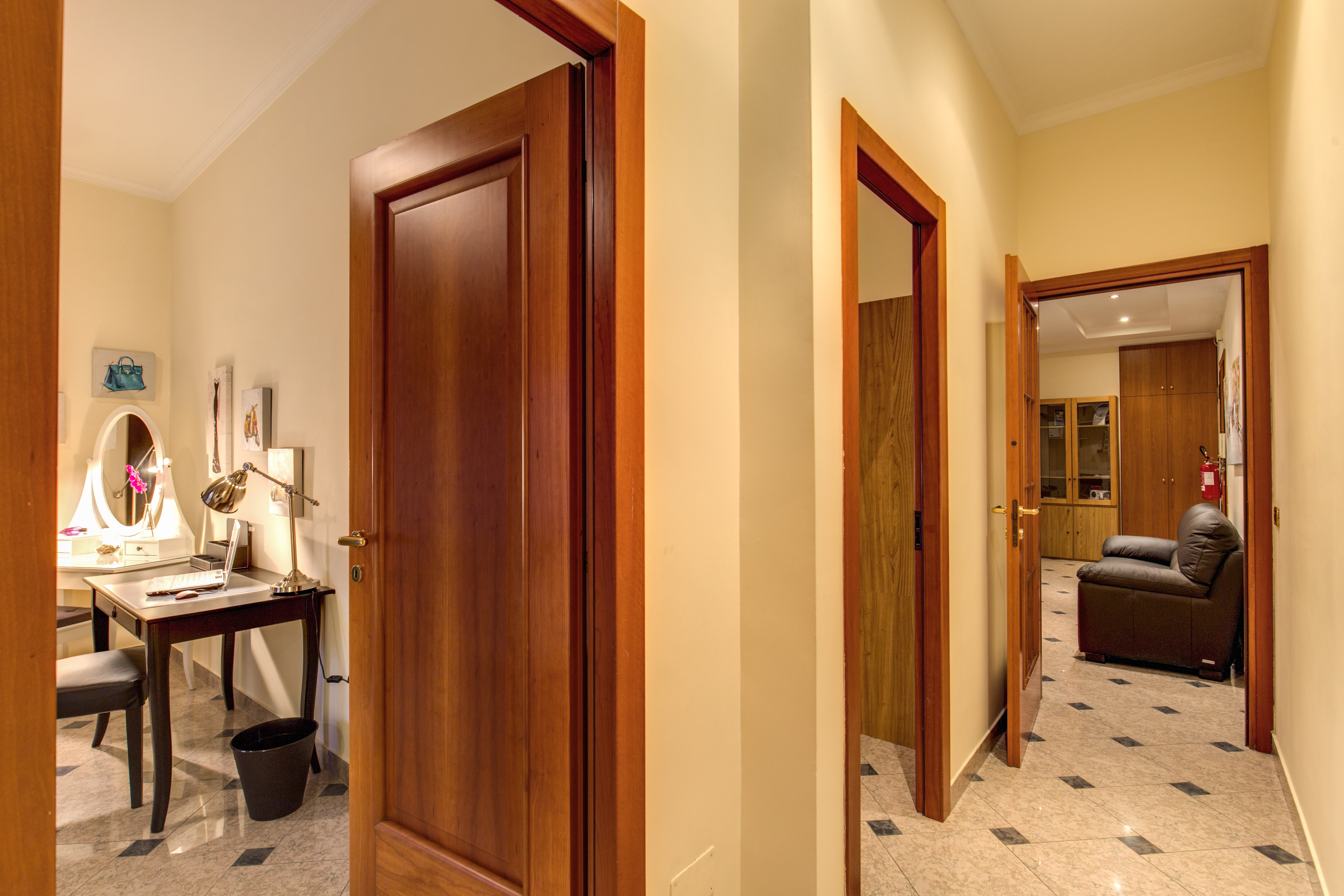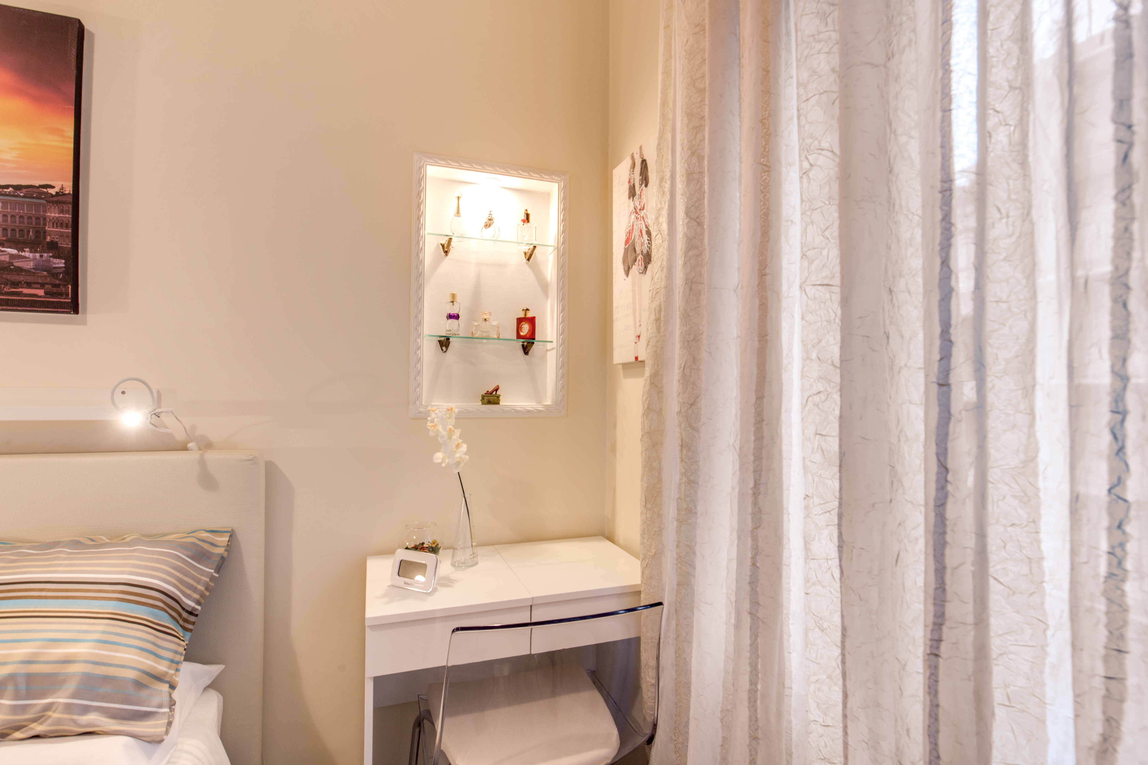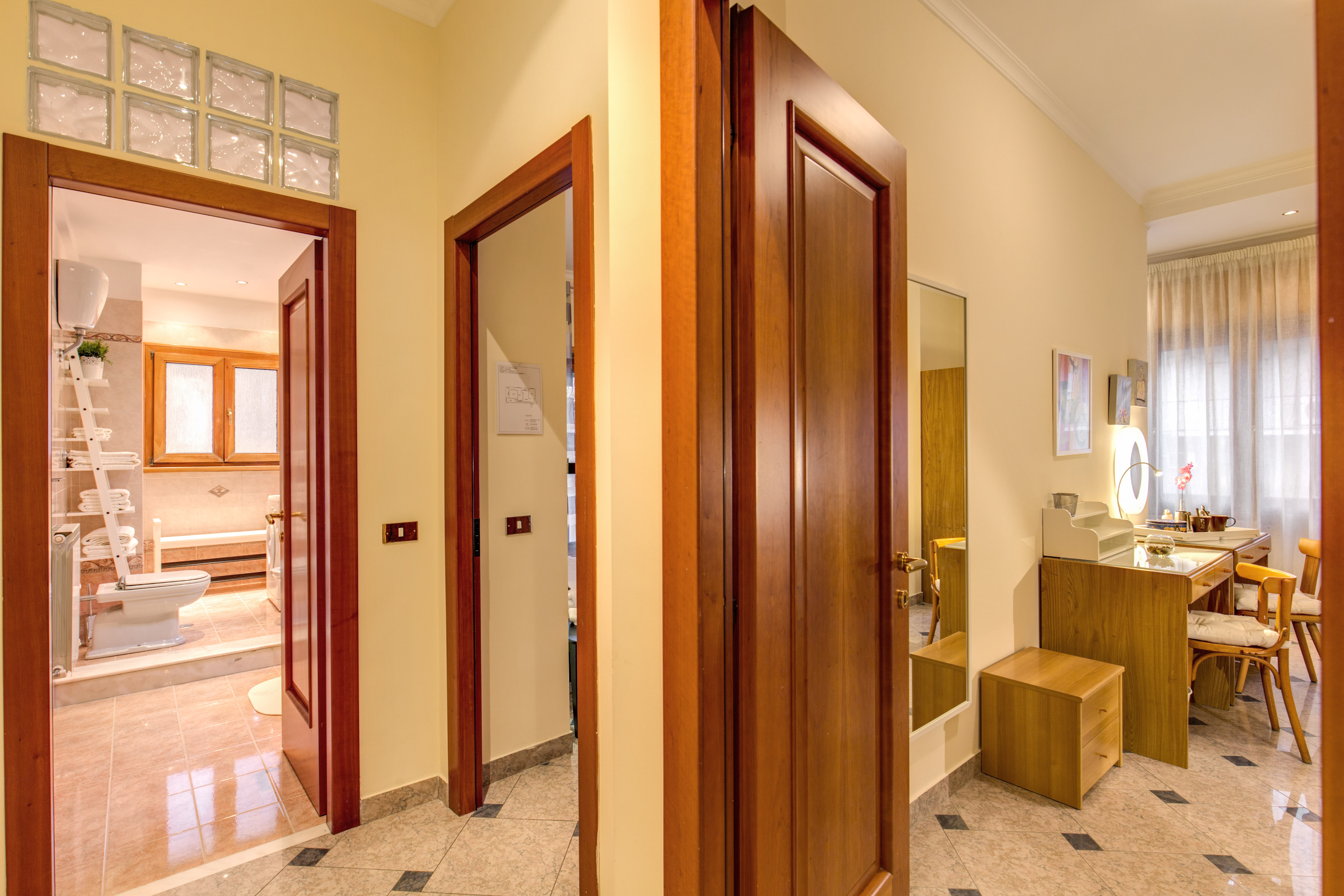 Completano il quadro dell`appartamento il pavimento in gres porcellanato in ogni stanza, finestre ad isolamento acustico e termico, l’arredamento nuovo, con particolare attenzione ai colori delle pareti e degli arredi volontariamente scelti tra quelli chiari per una maggiore luminosità.